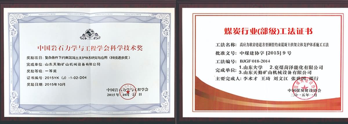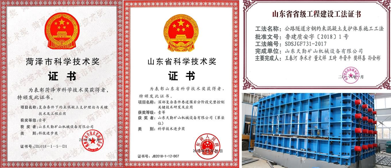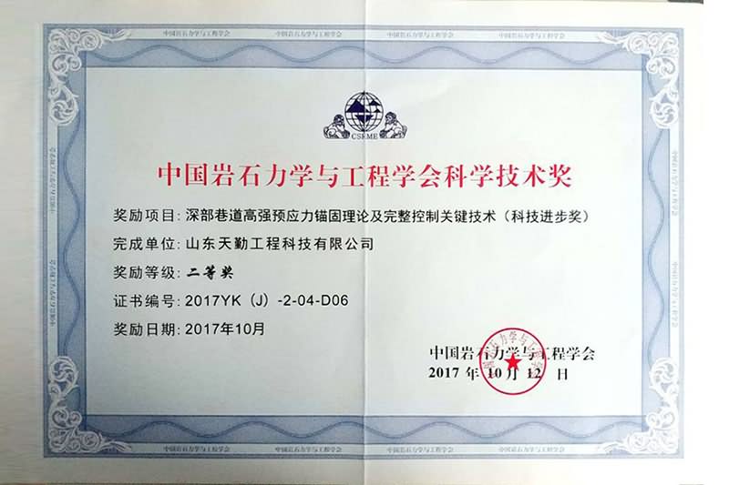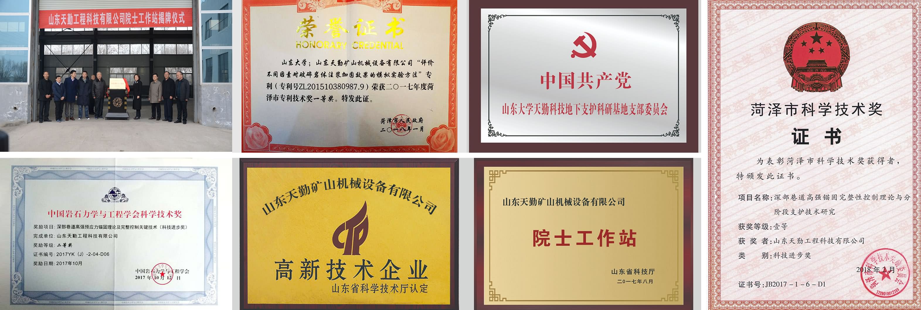 中國工程院顧金才院士作為在站院士擔任特聘專家 公司獲批山東省高新技術企業 關鍵技術在兗礦集團、山東能源集團和齊魯交通發展集團推廣應用 建立了山東省工程實驗室、山東省企業技術中心 建立了山東鄆城天勤協同創新基地黨支部 承擔了西部隆起帶急需緊缺人才項目 獲得了菏澤市科學技術進步一等獎 獲得了菏澤市專利一等獎 獲得了山東省高等學校科學技術一等獎 獲得中國巖石力學與工程學會科技進步二等獎 獲得了中國煤炭工業科學技術二等獎 授權國家發明專利5項